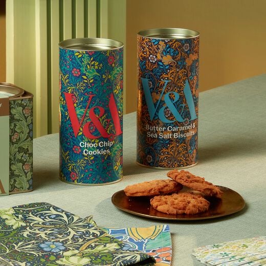 倫敦維多利亞與阿爾伯特博物館(V&A)不僅是藝術天堂,其禮品店的曲奇更是2025年熱門手信。這些巧克力碎片曲奇以博物館經典「Seaweed」圖案鐵盒包裝,餅乾鬆脆香濃,內含大量黑巧克力塊,完美搭配熱巧克力或下午茶。鐵盒設計靈感來自1901年John Henry Dearle的織物,兼具收藏價值。價格約£6,在V&A店內或官網輕鬆入手,適合送給文青朋友。
