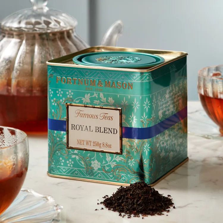 另一皇室認證品牌,1707年創立於白金漢宮旁,2025年新版Royal Blend融合印度與斯里蘭卡茶葉,口感醇厚。經典寶藍色包裝禮盒內含多款茶包,約£10起,在Piccadilly旗艦店選購,象徵英國貴族風範。
