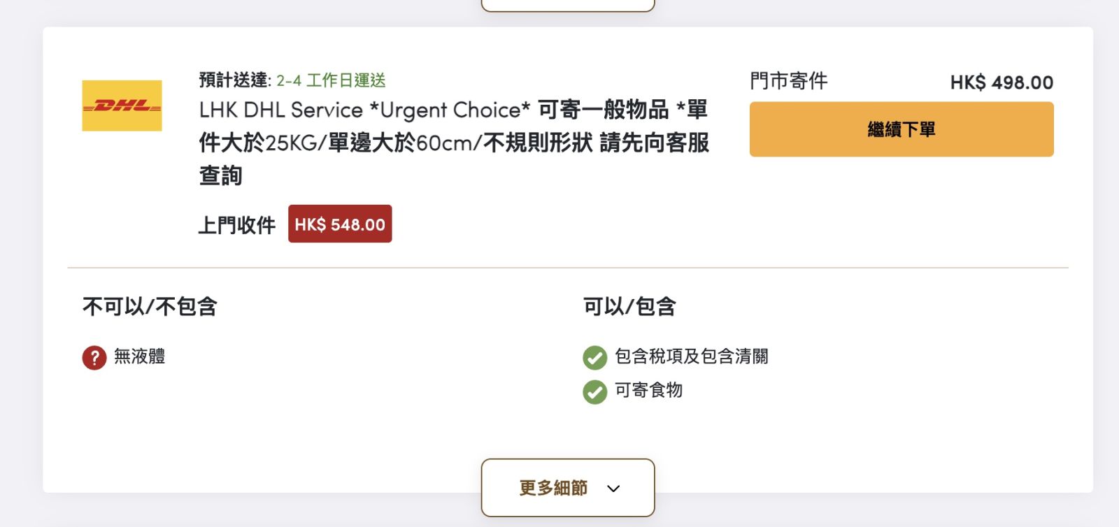 可以的。請選擇 LHK DHL Service 並建議直接到門市寄件 門市地址