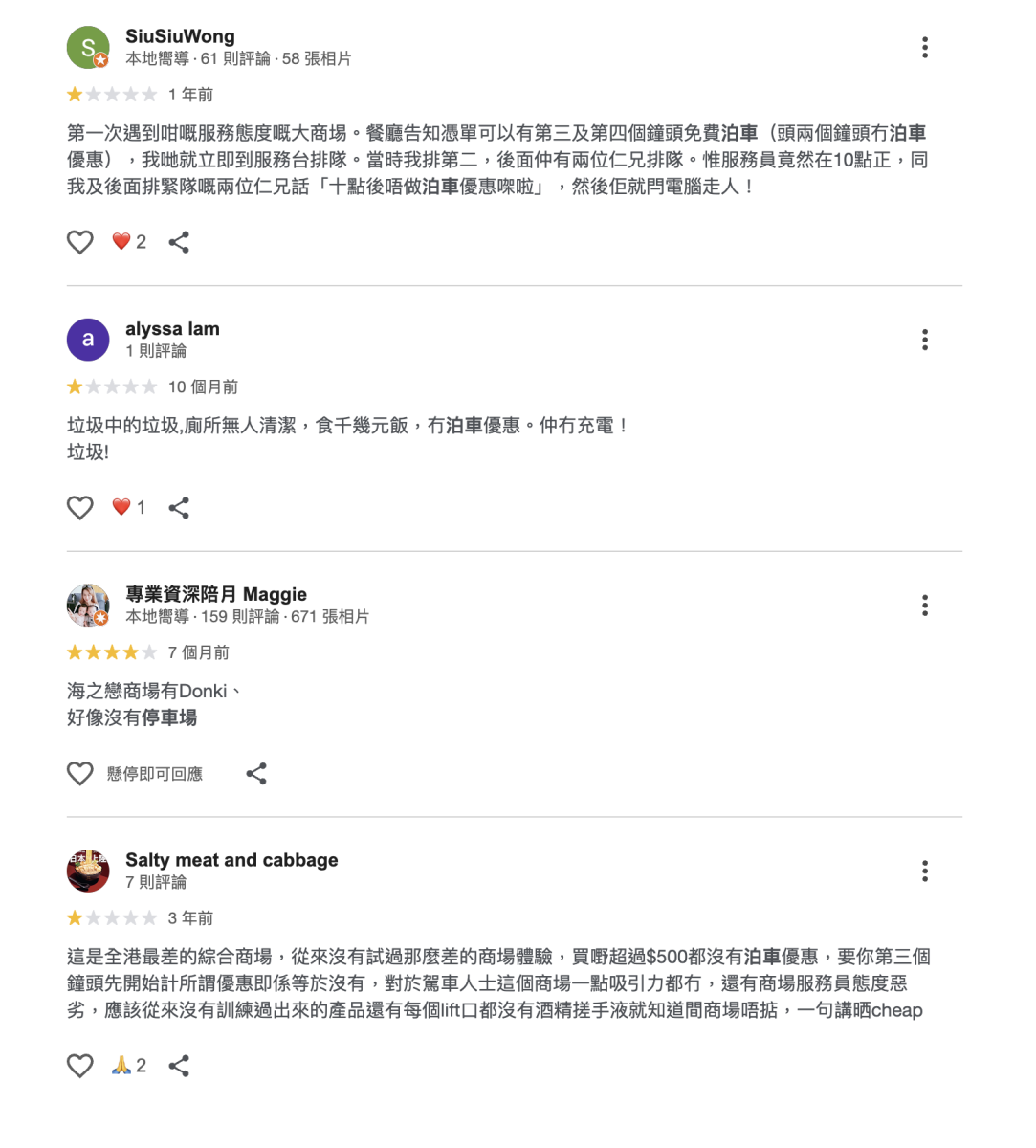 海之戀商場設有專屬停車場,位於商場2樓及周邊區域,總泊車位超過數百個,足以應付大部分訪客需求。